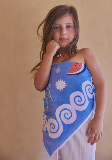 We're so proud to have created a unique piece with our style icon Peppa Hart for our latest FINN capsule; a bespoke mini sarong for our minis to wear and love. Encompassing our signature SMM style, we hope your mini will cherish their one-of-a-kind sarong for all their mini adventures for years to come."